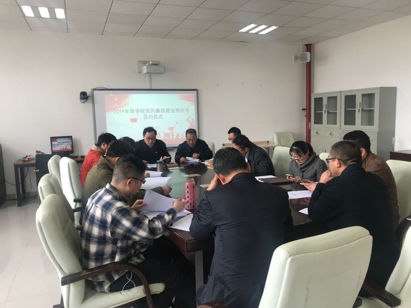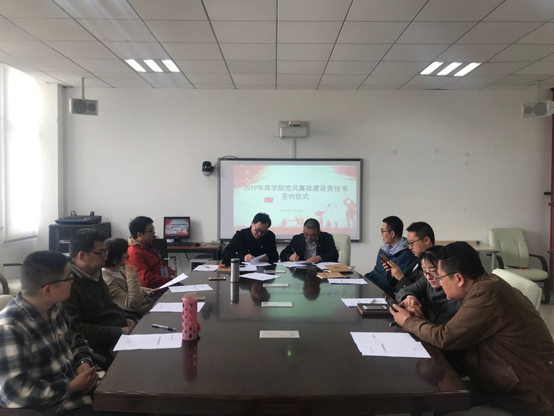 4月16日上午,2019年党风廉政建设责任书签约仪式在商院楼512会议室举行,全体党政领导班子成员、三级机构负责人及各教研室主任参加了会议。