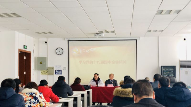 12月31日,董事长胡晟至永利yl23411宣讲十九届四中全会精神,永利yl23411全体教师、员工党员、入党积极分子代表参加了会议,会议由公司党委书记项军主持。