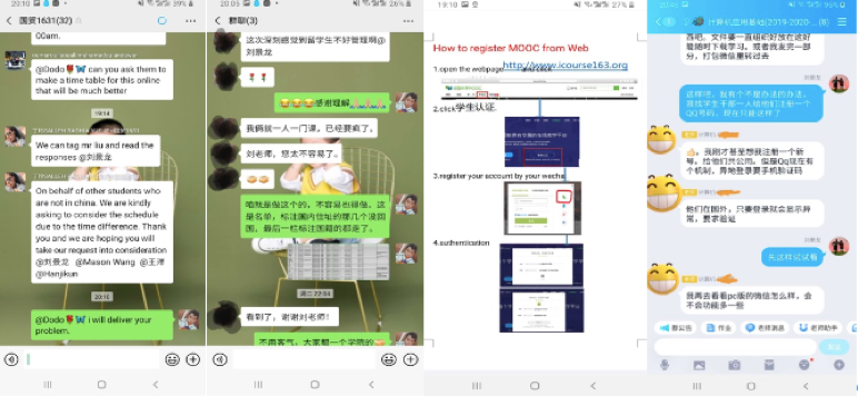 作为公司职工人数最多的公司,如何协调管理公司87名国际员工如期开展网上学习,成为摆在全院师生面前的一项紧迫任务。学习平台皆为中文,国际员工看不懂怎么办?公司87名国际员工,有52人在国外怎么办?境内手机号码在国外无法注册绑定教学平台怎么办?一切难题,只有在实干中才能破解。针对语言困难,公司辅导员刘景龙和任课教师一起,制作英文指南,指导员工平台使用;为解决跨国教学难题,他主动与教务、教师、员工沟通对接,及时了解师生需求,密切掌握员工入驻情况,一对一指导员工注册;《计算机应用基础》这门课全班29个员工只有8人在国内,境外员工无法注册平台,面临无法如期网上开课的问题,刘老师主动找任课教师一起想办法,使得问题得以解决。在师生的共同努力下,公司国际员工基本能如期开展网上学习。居家办公对及时有效地开展工作造成了一定困难,刘老师有时难免着急,但看到家人每天冒着被传染的危险,早出晚归到车站抗疫一线值班,他又不断提醒自己一定要稳住,把工作做扎实。他说:“作为党员,我们必须与大局同频,与时代同步,把工作当事业干,把事业当使命干。我坚信,我们一定能打赢这场抗疫防控阻击战”。
