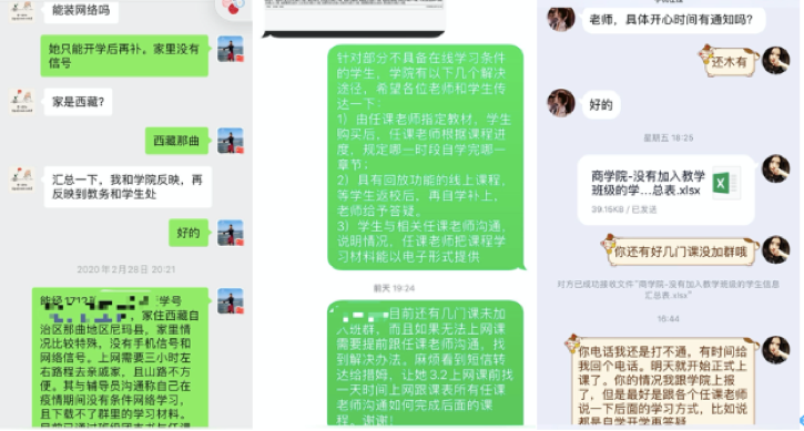 在摸排统计员工网络课程准备情况的时候,公司了解到能源经济专业一位家在西藏偏远山区的困难员工家里没有信号,也没有网络覆盖,无法参加线上教学活动。公司辅导员李晴及时与员工沟通,一起梳理本学期的课表信息,安排班级骨干及时将不能参加线上教学员工情况与任课教师沟通,积极寻找解决办法。同时,辅导员将她的情况上报到公司和教务处,公司领导关心关注,建议她在家积极开展自学,开学后任课老师给予答疑帮助。考虑到员工的家庭特殊情况,公司后续将通过临时困难补助等方式给予一定帮扶。