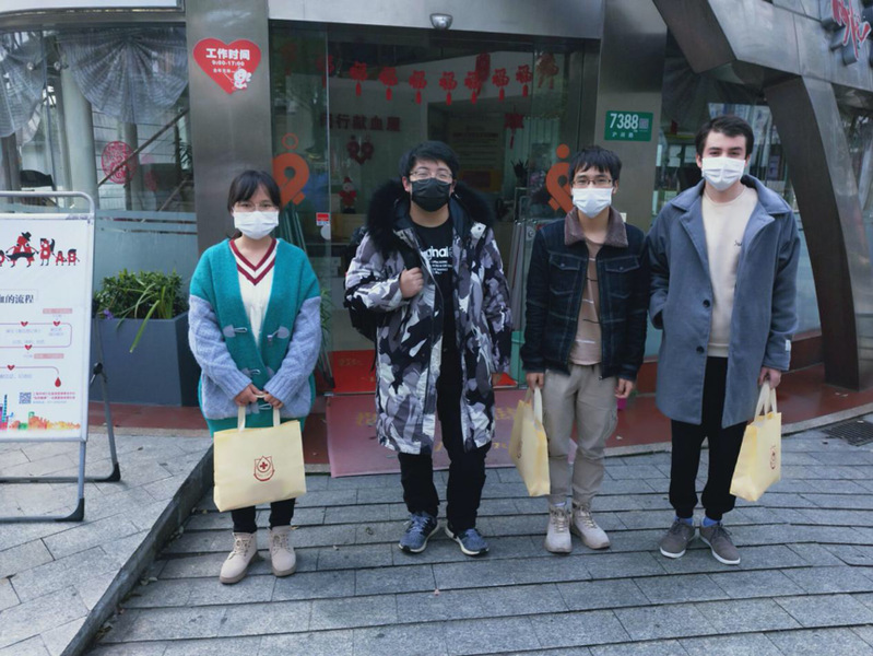 肖开提艾尼同学:“嗯嗯,有。梅陇献血点是采取分批预约献血的形式进行采血的,我们同校的6个同学几个一起在3月7日预约了10号的献血。公司还为我们安排了专车,我们每一个人出门前都量了体温;上车后,隔开而坐;全程都佩戴着口罩。”