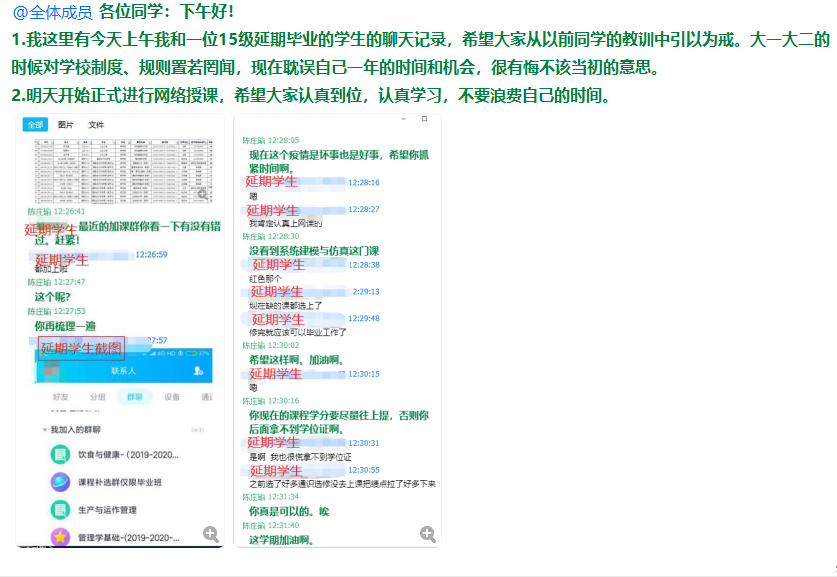 疫情之下,为确保应届毕业生顺利毕业,公司就业班主任点对点、一对一帮扶到位,帮助毕业生梳理课程学分,抓住最后的加课机会。辅导员陈庄瑜所带班级有一位延期毕业员工,为了确保该生今年顺利毕业,陈老师仔细分析他的学分完成情况,主动指导员工选课,给予正面支持和鼓励,并以此为案例希望其他毕业生引以为戒,提前做好毕业规划。