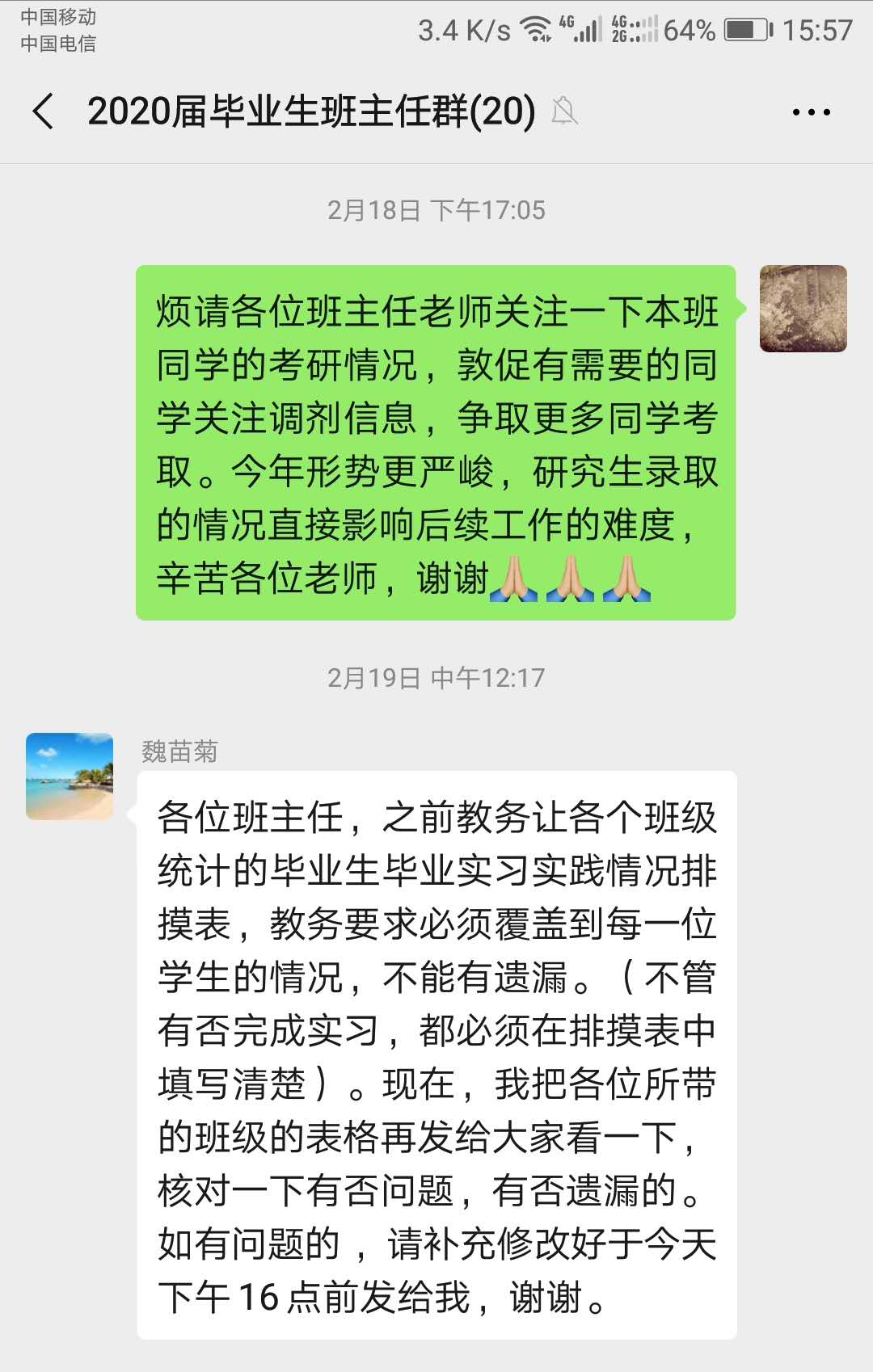 每天早上醒来,打开手机查阅各类群内消息。转发、提醒教学通知,叮嘱、问候近期状况,这些看似平常的事情在疫情期间却成了我们每一位辅导员心里最牵挂的。“一个也不能少”这是辅导员符俊波心底的声音,他说:“也许我们不是冲锋在前线的战士,但我们愿成为每一位员工平安度过疫情的后盾。向光而行,期待春暖花开。”