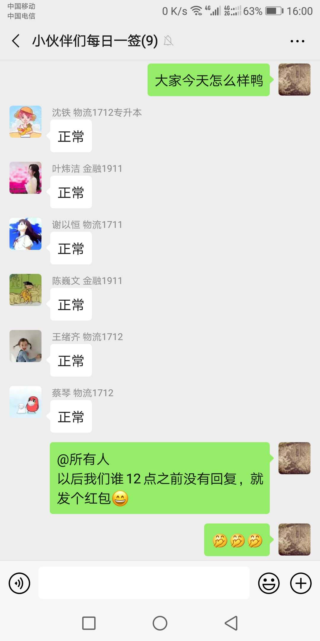 自疫情爆发以来,永利yl23411共有11名员工一直住校至今。辅导员李畅作为永利yl23411负责园区工作的老师,按照要求,认真贯彻落实校、公司党委关于积极预防,严格管控的规定,把关心、管理寒假留宿在公司的员工作为日常工作中的重中之重:每日向留宿员工询问体温、身体状况,确保掌握每一个人每一天的情况及其变化;主动了解员工的生活和学习情况,利用QQ群、微信做到每天都有交流,和每个员工都有交流,并定期向公司陈秀春老师汇报,近两个月来,24小时不关机,早上第一件事问员工体温,晚上点名问情况,已成为她的生活“习惯”。每天看着QQ群,微信里的每一个员工体温正常,身体状况良好动态情况,心里的“大石头”也能落地了。目前,在公司党政高度重视和关怀下,留宿的11名同学,身心健康情况良好,学习井然有序,新学期的学习任务正有条不紊的展开。