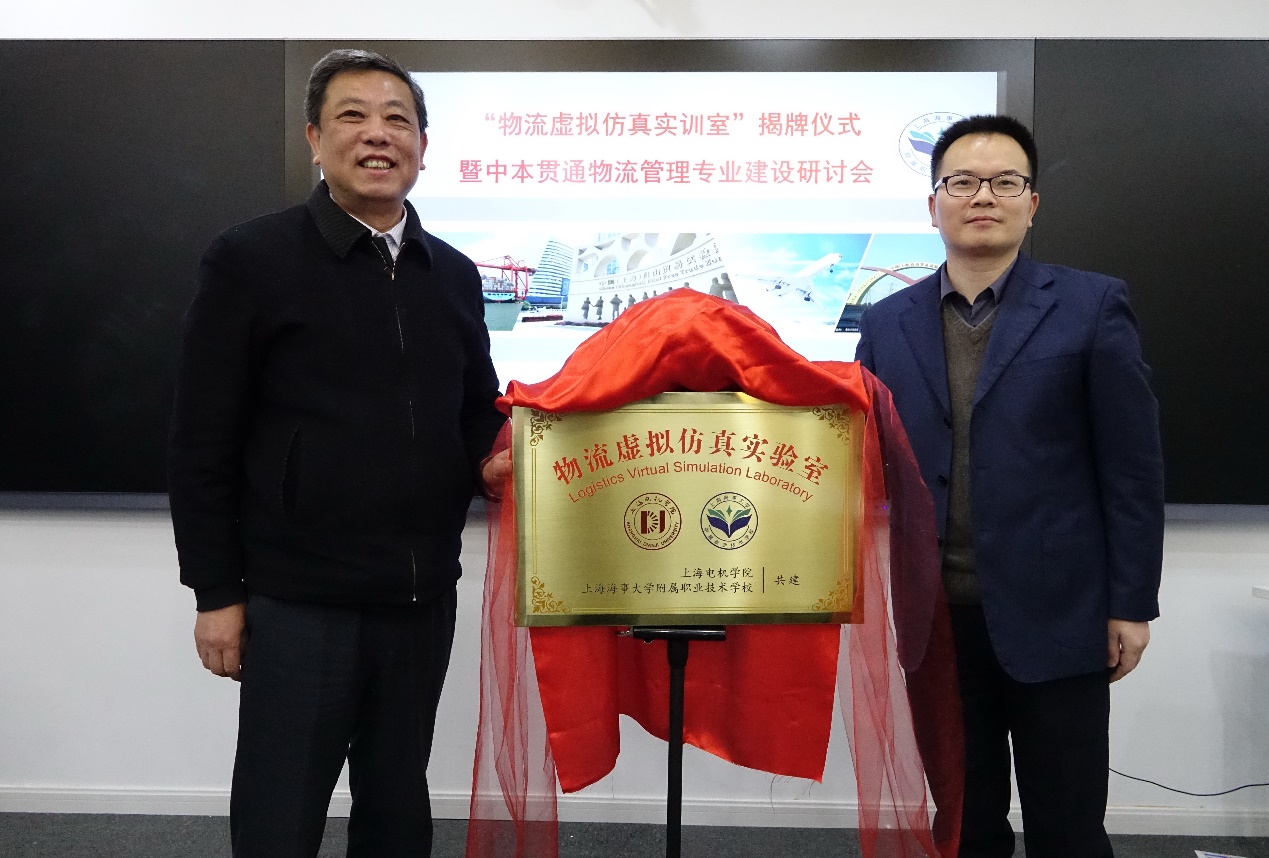 永利yl23411副董事长杨俊杰和上海海事大学附属职业技术公司董事长薛士龙共同为“物流虚拟仿真实验室”揭牌。