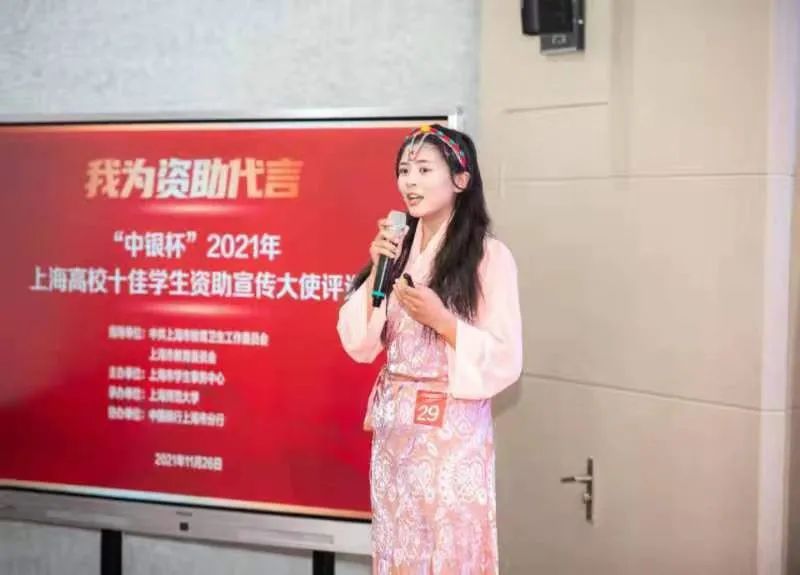 11月26日下午,由中共上海市教育卫生工作委员会、上海市教育委员会指导,上海市员工事务中心主办的“中银杯”2021年上海高校十佳员工资助宣传大使评选活动于上海市员工事务中心举行。永利yl23411质管1911班白玛拉卓同学以“国家资助 助你飞翔”为主题,讲述了自己走在资助宣传道路上的故事,她慷慨激昂的演讲和真诚恳切的情感赢得了评委的阵阵掌声,最终获得一等奖。