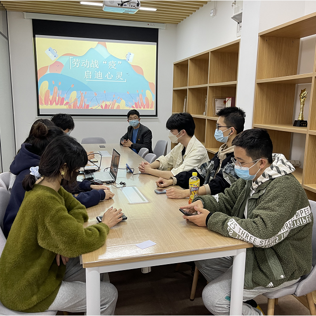 随后,相关师生赴19宿公司党建活动室开展理论学习及交流讨论活动,理论课由马克思主义孙秀丽老师线上进行。孙秀丽不仅强调了实地劳作的重要性,更向同学们深入地讲解了 “劳动的意义”,孙秀丽指出,但在古往今来的社会发展中,劳动始终是一切力量的源泉。劳动创造了财富,更将人与人联系在一起,正如实践过程中的同学们,在配合中增长默契,在挥洒汗水中体验劳动的幸福。马克思主义公司多位教师也参与了线上交流,结合马克思主义劳动观,引导同学们注重劳动对精神的塑造。马克思主义公司经理范冬姣进行了总结,进一步阐释劳动教育的必要性,倡议同学们在生活中适当参与一定的体力劳动,尊重不同岗位的劳动,在遵守疫情防控要求的前提下可以开展一些校园内的劳动,劳动应该成为我们的本色。