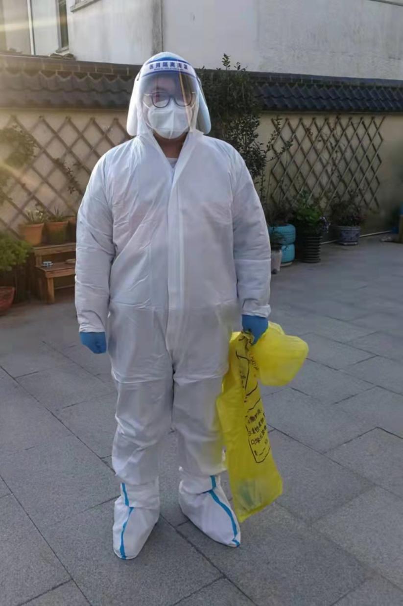 张涵同学的父母都是党员,因为职业的关系,他们自疫情开始就首当其冲回到了岗位上,投入到这次“抗疫”战斗,从三月开始至今一直坚守在一线。张涵同学的家在疫情严重的浦东地区,随着疫情发展变得严峻起来,城市公交地铁都已停运,小区也实行了封闭式管理。每天看着上海发布的数据,看着网上对上海的各种评论,他从“淡定”变得焦虑起来。上海是他出生成长生活学习的地方,是一直以来引以为傲的存在,现在她病了,他认为自己应该为她做点什么。在疫情面前没有人能够独善其身,也没有人可以是旁观者。作为一名在校老员工,更作为一名入党积极分子,在父母的支持下、班主任的鼓励下,张涵主动积极向村委会会提出加入志愿者队伍的申请,要求参与支援服务。进行集中培训中,他学会了如何正确的穿脱隔离防护服和其他个人防护注意事项,接着就开始跟着村委工作人员投入到社区防疫工作中。在他们的志愿者队伍有不少跟他一样的年轻人,大家都是响应国家号召,想为社会做出贡献的青年人。张涵的主要工作是负责发放抗原试剂,从清晨5点起,就跟随村委工作人员上门发放抗原试剂,记录抗原测试结果并回收使用过的抗原试剂。工作虽然难度不高,但是“大白”的衣服又闷又热,半天走下来里面的衣服就全湿透了,脸上也是又闷又痒还勒出了痕,想到自己穿着防护服工作半天就已经感到非常不适了,那些奋战在一线的防疫人员每天都要穿着这样的“大白”工作一整天,他不禁肃然起敬。社区静默期间,政府定时的向居民发放保障性物资,也使得张涵同学的生活得到了保障。在得知村委防疫工作人手不足的情况后,他又主动参与到搬运和发放生活物资的“驼峰大队”,负责将物资发到每家每户。通过这些志愿者工作,他真正的体会到了,哪有什么岁月静好,只是有人替你负重前行。