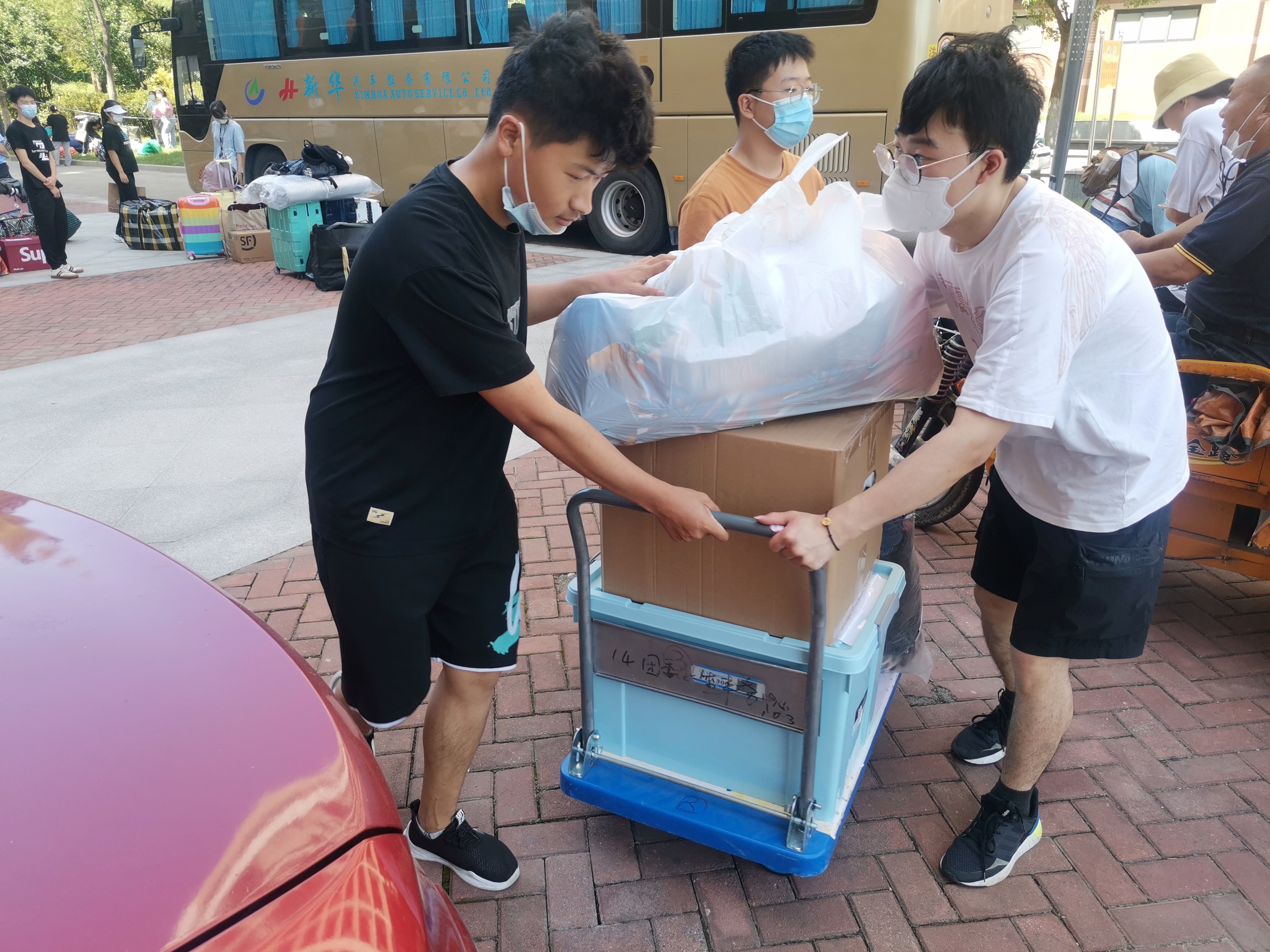 跨校区搬迁是该项工作的“重头戏”。在公司总务部、员工工作部等相关职能部门的支持和帮助下,永利yl23411闵行校区工作办公室组织2021级本科生以寝室与班级为单位,依次抵达上车点,有组织、分批次搬运上车,做到行李完整、防控有效。随着一排排搬运车辆的安全抵达,公司党委副书记沈瑾组织员工工作团队全员参与,协助调度搬运,不仅做到科学高效,更加温情暖心。临港校区的志愿者们主动上阵,搬起大包小包的行李,推着平板车一趟趟穿梭于楼宇之间。他们不仅充分发扬了互助、友爱、奉献、进步的志愿精神,更展现了商院学子的良好精神风貌。